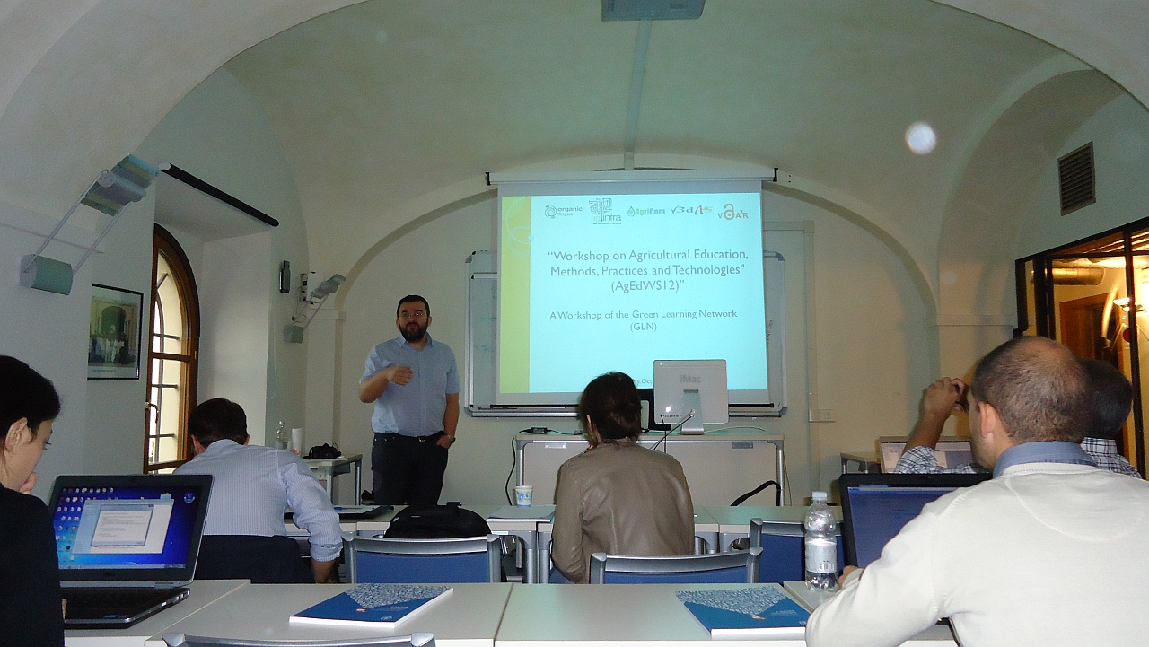 The "Workshop on Agricultural Education, Methods, Practices and Technologies" (AgEdWS12) took place at Pollenzo, Bra, Italy, on October 25, 2012, right after Green Ideas 2012. It was supported by a number of EU-funded projects, including Organic.Lingua and agINFRA, and was attended by course designers, content providers, repository managers and software developers.